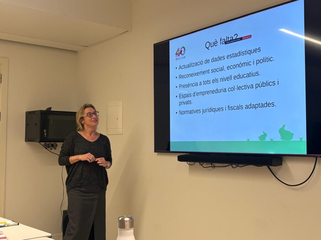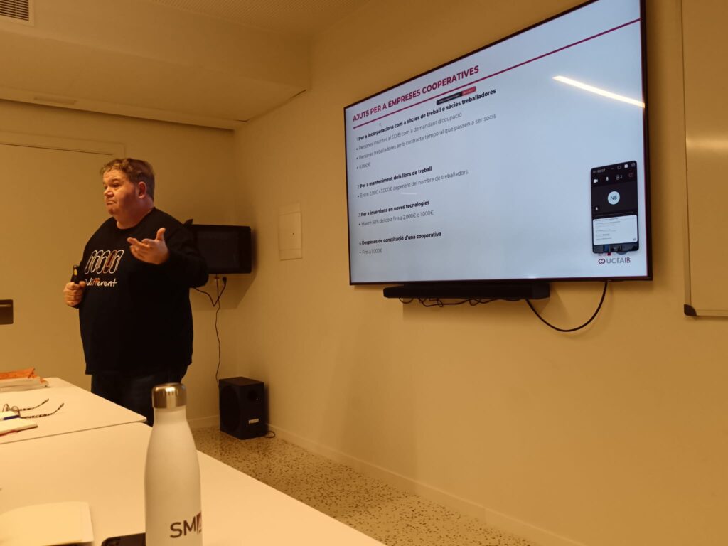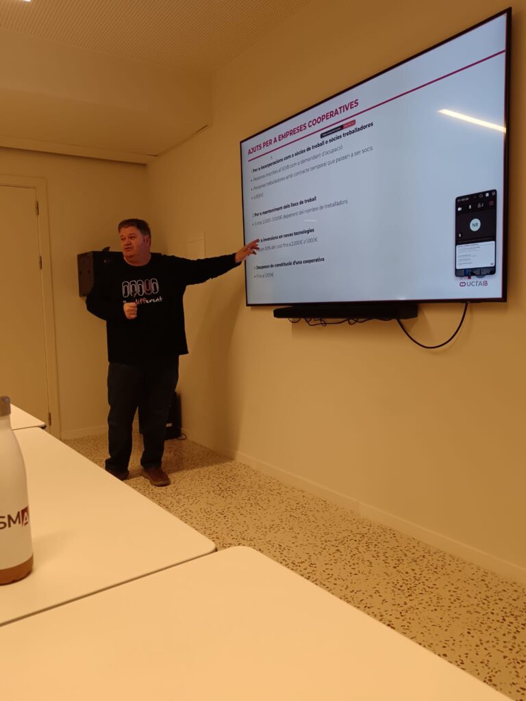 La sessió, centrada en les cooperatives de treball, va permetre a l’alumnat conèixer de primera mà el funcionament d’aquest model empresarial: els seus òrgans de gestió, els principis cooperatius, el procés de creació d’una cooperativa i el seu impacte social i econòmic.